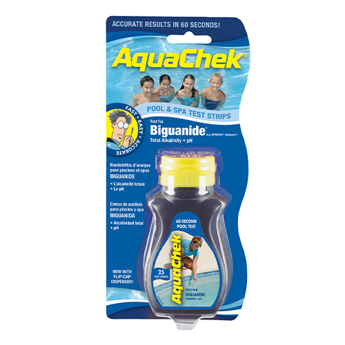 Testagem: Após o primeiro passo feito, verifique os níveis químicos da sua piscina, através das tiras analíticas, que poderá encontrar no Kiosque das Piscinas (este passo deve ser feito com frequência e não só quando a água está turva).