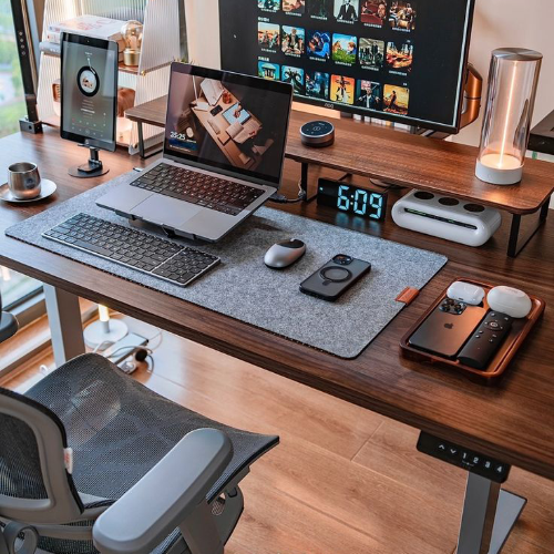 Garanta que você tenha acesso a todas as ferramentas tecnológicas necessárias. Um bom computador, bem como, uma conexão de internet rápida e acessórios como mouse e teclado ergonómicos são essenciais. Dessa forma, mantenha os cabos organizados e fora do caminho com suportes específicos.