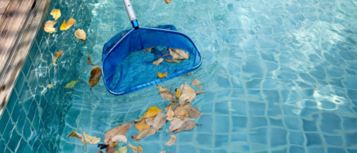 Com a queda das folhas no outono, a piscina pode rapidamente acumular detritos na superfície da água. Para evitar que as folhas se decomponham e causem obstruções ou manchas no fundo da piscina, é importante removê-las com frequência.