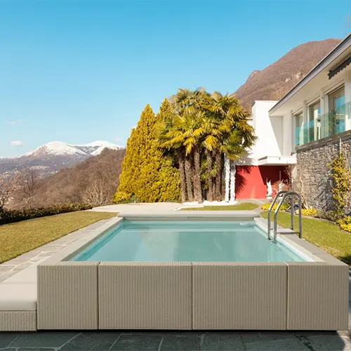 - Piscinas de Vinil: Versáteis e com design personalizável. Dessa forma, são uma ótima opção para quem deseja uma estética diferenciada.